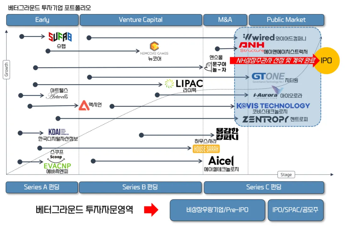 그중 38%에 해당되는 6개의 IPO주관사 계약 그외 10개 종목 마일스톤 성장 중